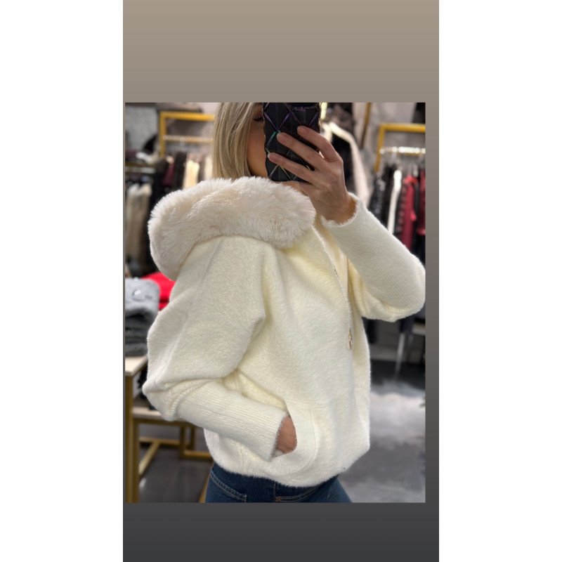 İthal Kapşonlu Kürk Detay Hırka